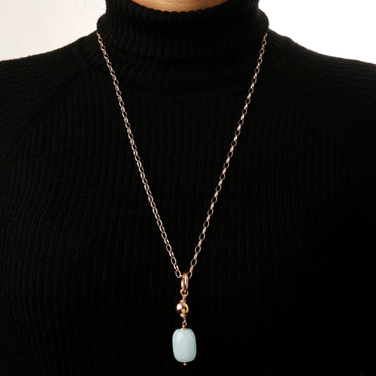 Collana Lunga Catena Rolo Allungata e Pendente con Sfera Lucida e Acquamarina Sku: WSBZ02141