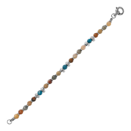 Bracciale con Rondelle Texture Sirena e Agata Multicolore in Argento 925 Sku: WSOX00212