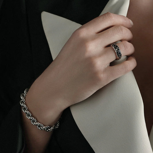 Bracciale Catena Grumetta in Argento 925 con Pavé di Spinelli Neri Sku: WSOX00623