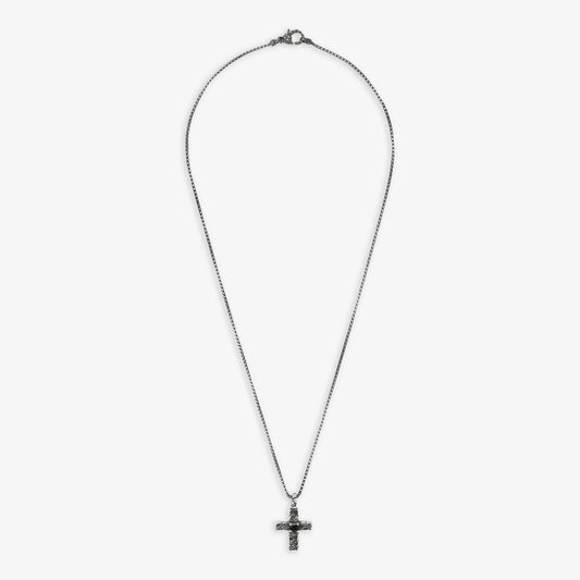 Collana Catena Veneziana con Pendente Croce e Spinello Nero in Argento 925 Sku: WSOX00505