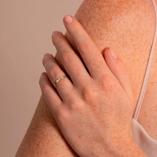 Anello Fedina con Piccoli Esagoni Bicolori Oro 375 Sku: WSGD90310