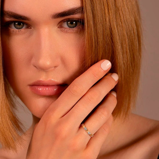 Anello a Fascia con Incrocio in Pavé di Cubic Zirconia Sku: WSET00825