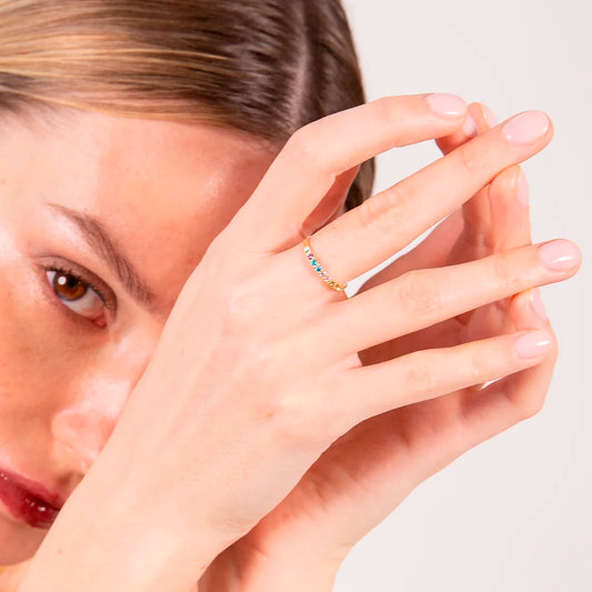 Prezzo di listino €99.00 EURPrezzo di listinoPrezzo scontato €99.00 EURRetail: €0.00 EURPrezzo unitario / perAnello Riviera Oro 375 con Cubic Zirconia Multicolore