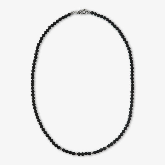 Collana Multifilo Rosario in Argento 925 placcato Rodio con Pietra Naturale Spinello Nero Sku: WSOX00072