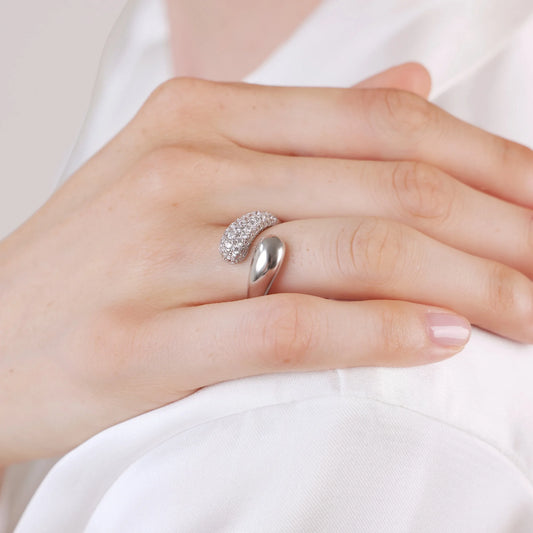 Prezzo di listino €100.00 EURPrezzo di listinoPrezzo scontato €100.00 EURRetail: €0.00 EURPrezzo unitario / perAnello Contrarié in Argento 925 placcato Platino con Pavé di Cubic Zirconia