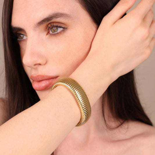 Bracciale Rigido Golden Maglia Popcorn con Pavé di Cubic Zirconia Sku: WSBZ02493Y