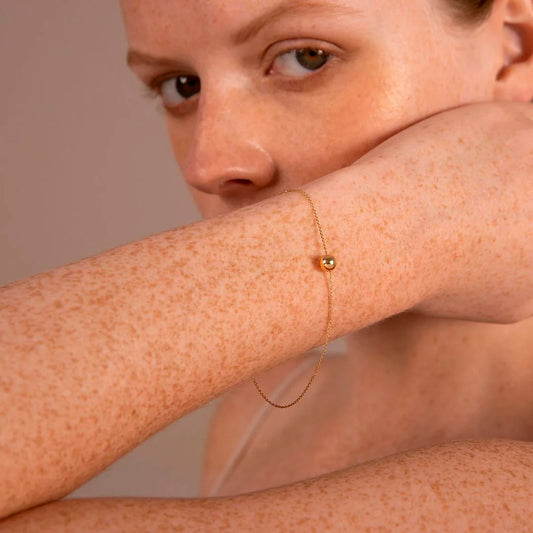Bracciale Golden con Maglie Ovali Intrecciate e Bead Lucide Sku: WSBZ02368Y