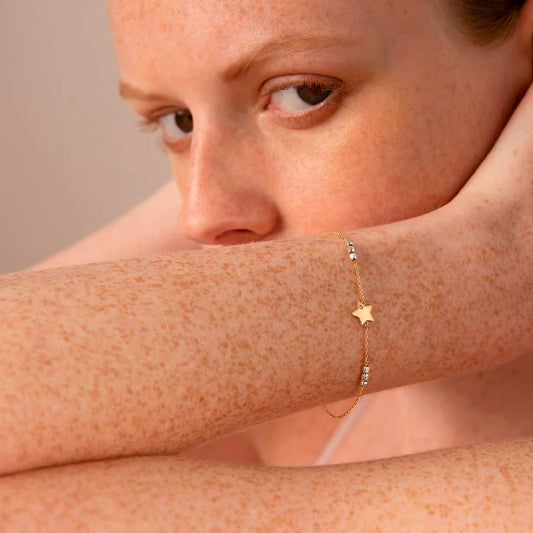 Bracciale Catena Forzatina con Stella e Punto Luce in Cubic Zirconia Oro 375 Sku: WSGD90298
