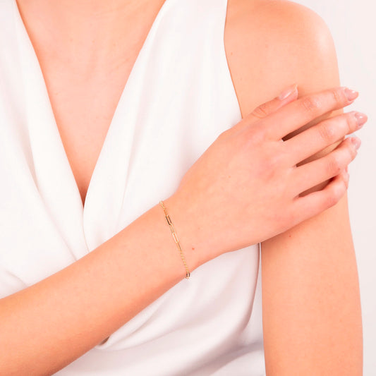 Bracciale Catena Rolo e Forzatina Allungata Paperclip Oro 375 Sku: WSGD90424