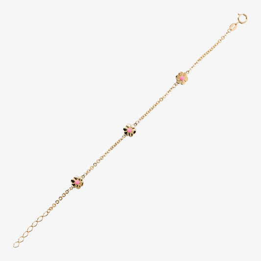 Bracciale Catena Rolo Oro 375 con Fiori Smalto Rosa Sku: WSGD90582