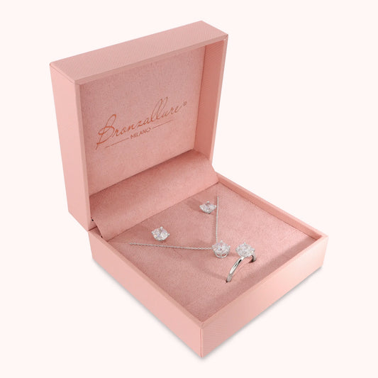 Set Collana + Orecchini + Anello Solitario con Punto Luce in Cubic Zirconia Bianca Sku: M17510XBR