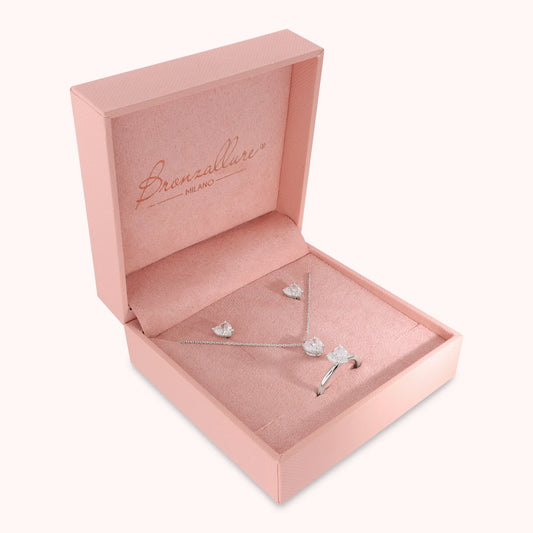 Set Cuore Bianco Collana + Orecchini + Anello Solitario con Cubic Zirconia Sku: M17513XBR