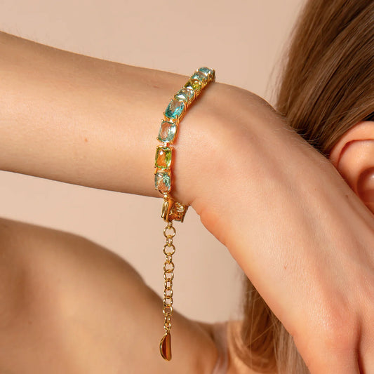Prezzo di listino €199.00 EURPrezzo di listinoPrezzo scontato €199.00 EURRetail: €0.00 EURPrezzo unitario / perBracciale Tennis Golden con Prisma Gem Verdi e Blu Taglio Mosaico