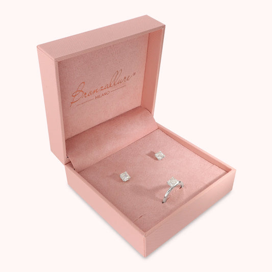 Set Orecchini + Anello Solitario con Cubic Zirconia Taglio Princess Sku: M17514XBR