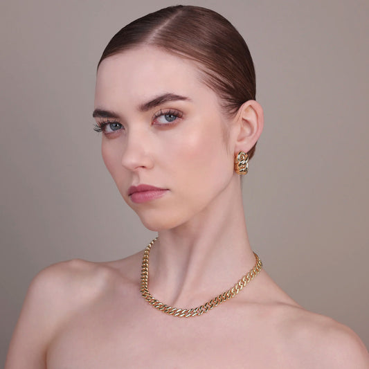Orecchini a Lobo Golden Semicerchio con Cubic Zirconia Sku: WSBZ02427Y