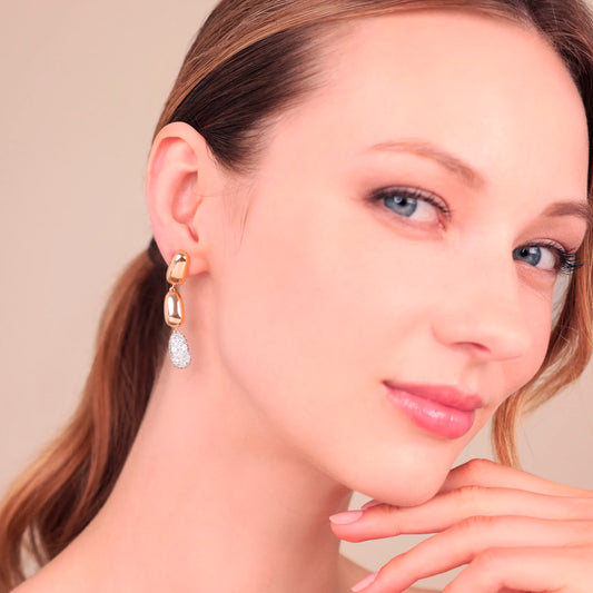 Orecchini Pendenti Pepite Lucide e Pavé di Cubic Zirconia Sku: E2183EBR