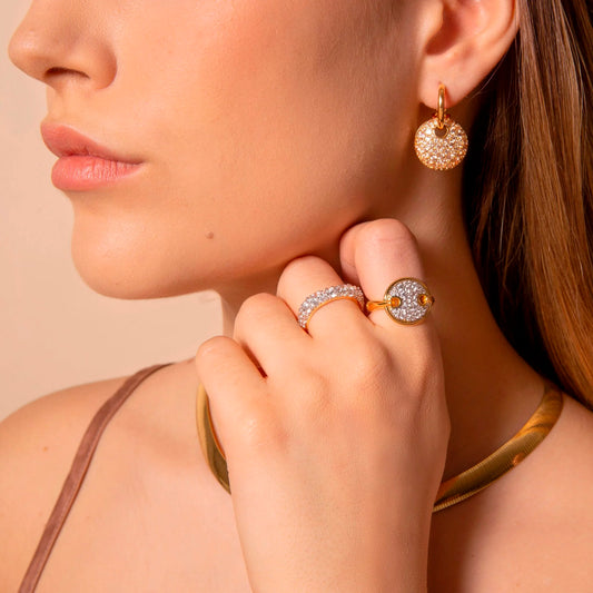 Prezzo di listino €129.00 EURPrezzo di listinoPrezzo scontato €129.00 EURRetail: €0.00 EURPrezzo unitario / perOrecchini Pendenti con Tondo Traforato e Pavé in Cubic Zirconia