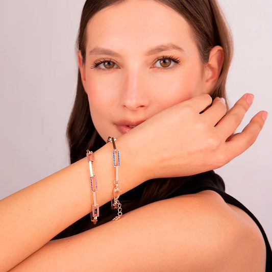 Bracciale Catena Forzatina Bicolore con Cubic Zirconia Sku: WSBZ02069
