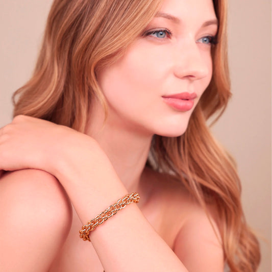 Bracciale Golden con Maglie Ovali Intrecciate e Bead Lucide Sku: WSBZ02368Y