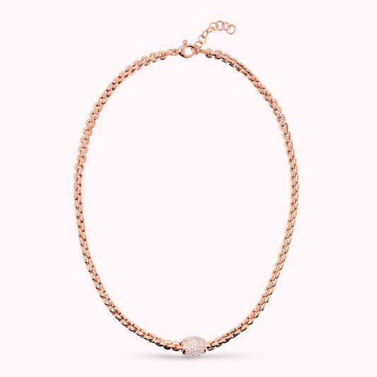 Collana Maglia Rolo Squadrata con Pavé di Cubic Zirconia Sku: E2565NBR