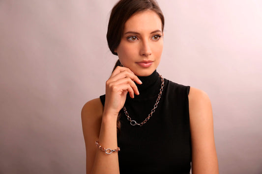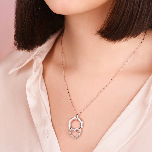 Collana Catena Forzatina con Doppio Pendente Pavé Cuore e Maglia Ovale Sku: WSBZ02280