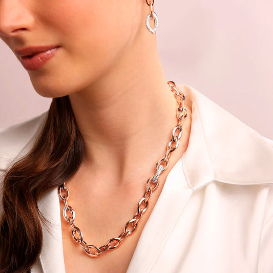 Collana Girocollo Golden Catena Grumetta Squadrata con Pavé di Cubic Zirconia Sku: WSBZ02326Y