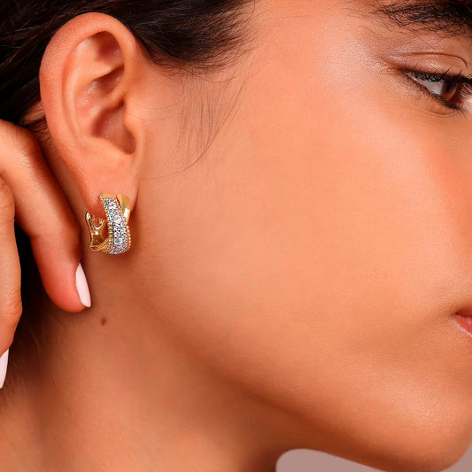 Orecchini a Cerchio con Incrocio in Pavé di Cubic Zirconia Sku: WSET00824
