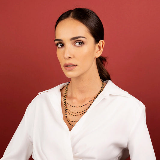 Collana Rosario Multifilo con Pietra Naturale Spinello Nero Sku: WSET00339