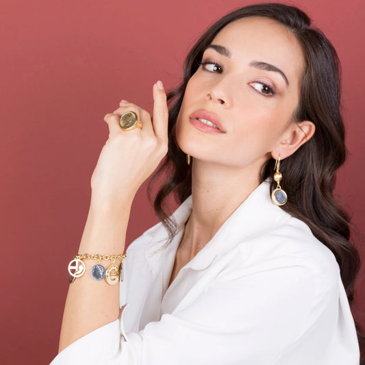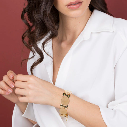 Bracciale Martellato con Monete ed Elementi a Clessidra Sku: WSET00641