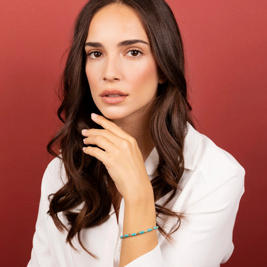 Bracciale con Rondelle in Pietra Naturale Turchese e Pepite Golden Sku: WSET00419