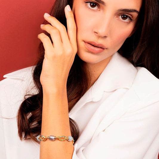 Bracciale con Sfere Golden Elemento Satinato e Pietra Naturale Quarzo Sku: WSET00526