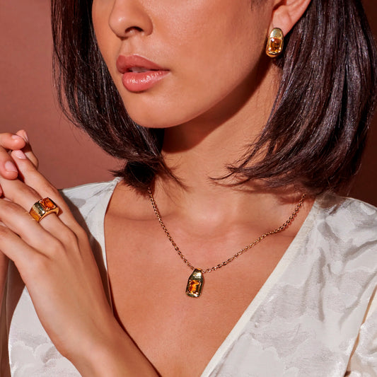 Collana Catena Forzatina con Pendente Martellato e Pietra Naturale Sku: WSET00675