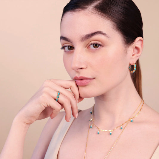 Orecchini a Cerchio Lavorati con Pietra Naturale Turchese Sku: WSET00776