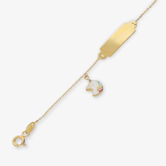 Bracciale Baby Oro 375 con Placchetta ID e Unicorno Smaltato Sku: E2599B09