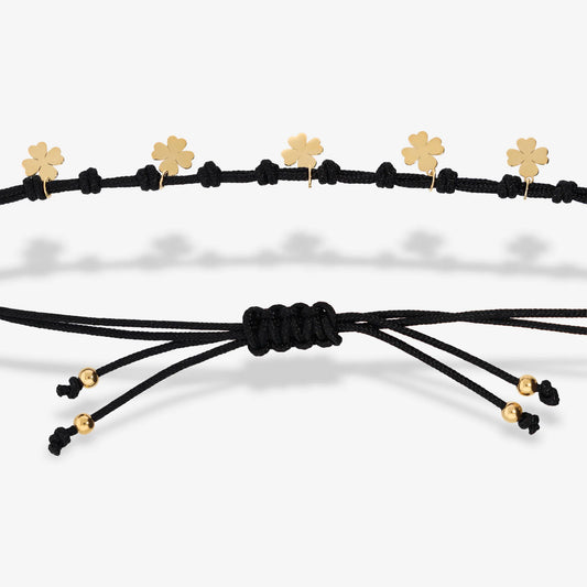Bracciale con Cordino Regolabile e Ciondoli Quadrifogli in Oro 375 Sku: WSGD90726
