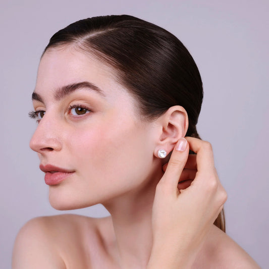 Orecchini a Bottone in Argento 925 placcato Oro 18Kt con Perle Keshi Bianche d'Acqua Dolce Ø 10 mm Sku: MTV131