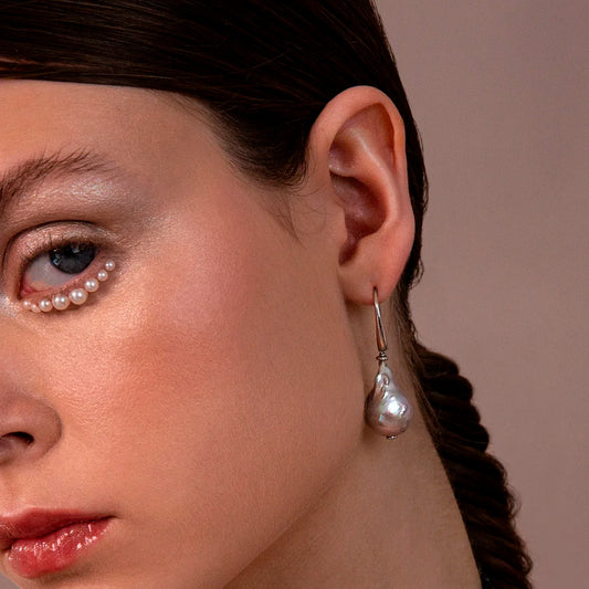 Orecchini Pendenti in Argento 925 placcato Oro Bianco 18Kt con Perla Scaramazza Bianca d'Acqua Dolce Ø 17/18 mm Sku: MTV143