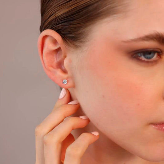 Orecchini Punto Luce Oro Bianco 375 con Diamanti Lab Grown 1Ct Sku: ETDM027