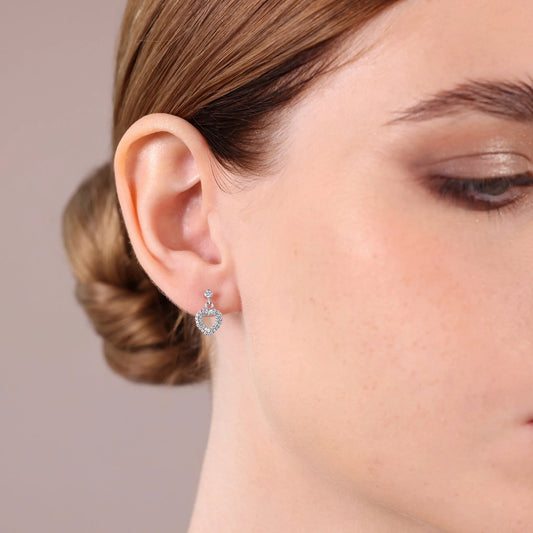 Orecchini Pendenti Cuore Oro Bianco 375 con Pavé di Diamanti Lab Grown 0.276Ct Sku: PRDM040