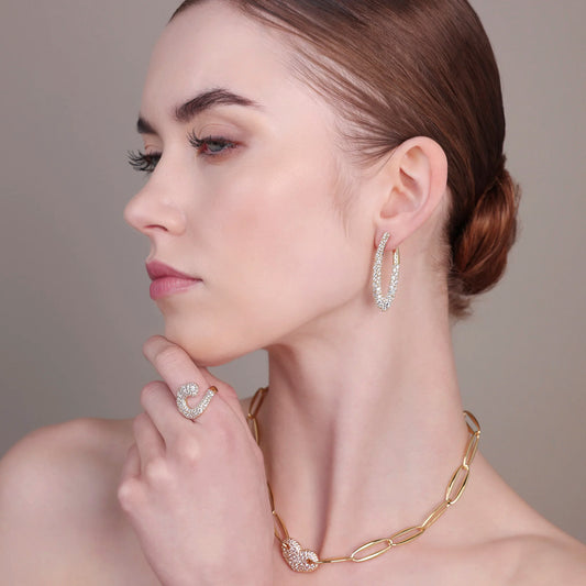 Orecchini Ovali Golden in Pavé di Cubic Zirconia Sku: WSBZ02478Y