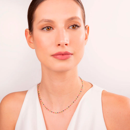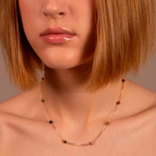 Collana Girocollo Maglia Forzatina Allungata Oro 375 con Pietre Naturali Multicolori Sku: WSGD90528