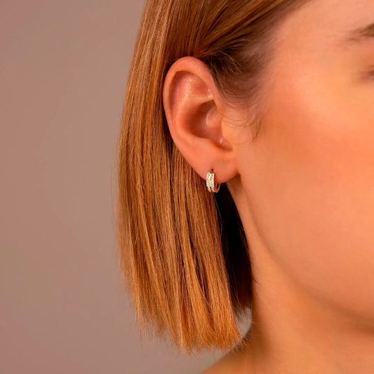 Orecchini a Cerchio con Doppia Fila di Cubic Zirconia Oro 375 Sku: WSGD90457