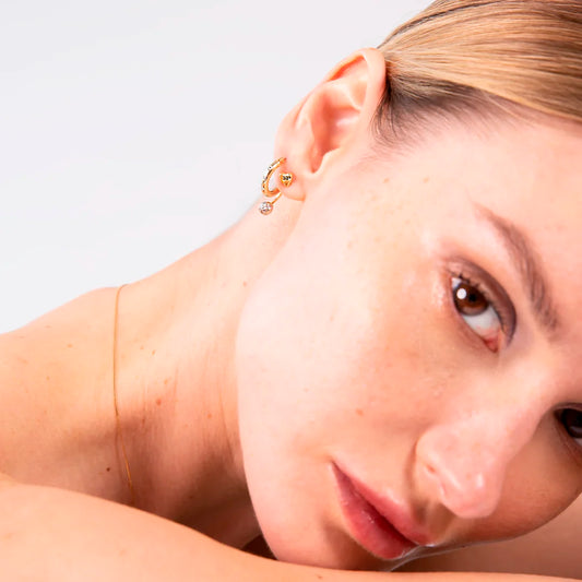 Orecchini a Cerchio Bombato con Cubic Zirconia Oro 375 Sku: WSGD90388