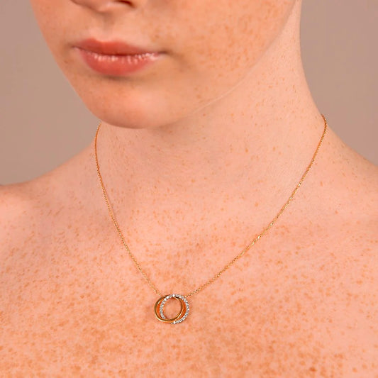 Collana Catena Forzatina e Pendente Doppio Cerchio Intrecciato in Cubic Zirconia Oro 375 Sku: WSGD90086