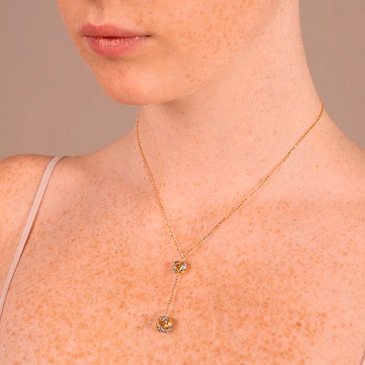 Collana a Cravatta con Catena Forzatina e Nodi Bicolori Oro 375 Sku: WSGD90108
