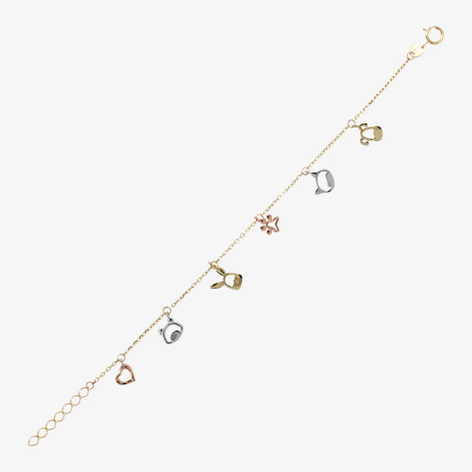 Bracciale Baby Catena Forzatina Oro 375 con Ciondoli Animali Sku: WSGD90594