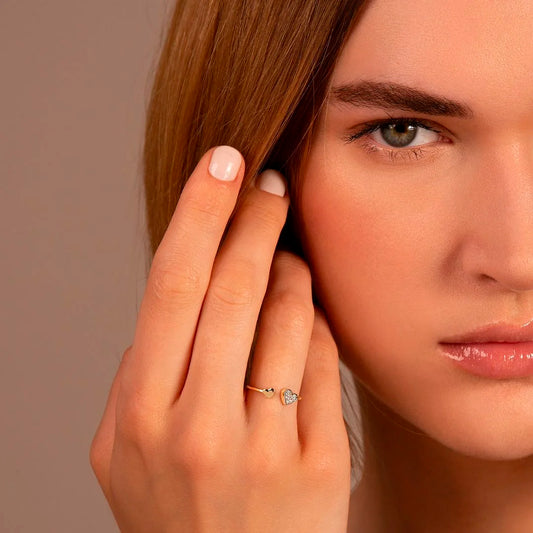 Anello Contrarié Oro 375 con Doppio Cuore e Pavé in Cubic Zirconia Sku: WSGD90610