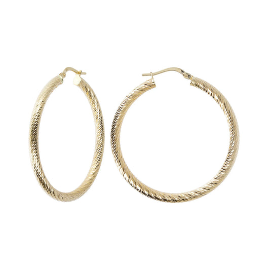 Orecchini a Cerchio Superficie Diamantata Oro 375 Sku: WSGD90138