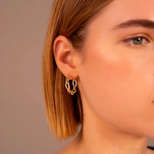 Orecchini a Cerchio Maglia Forzatina Alternata Oro 375 Sku: WSGD90428