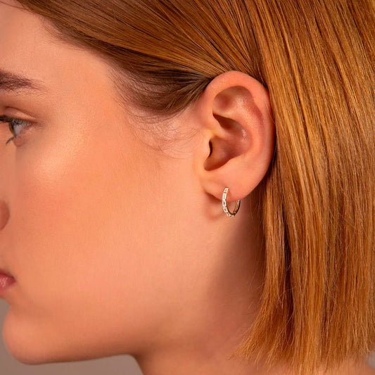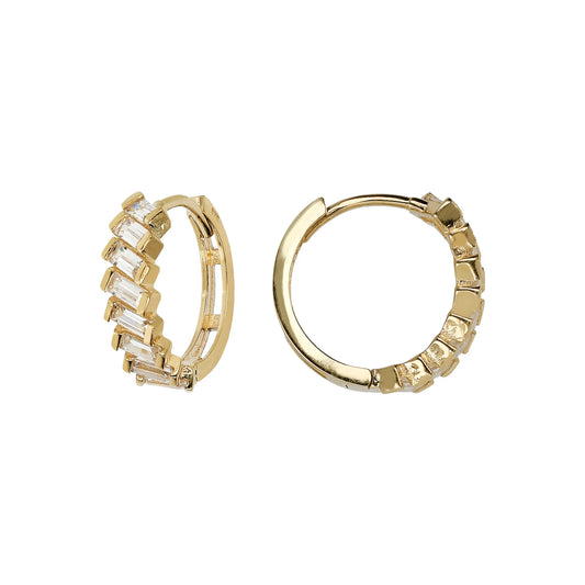 Orecchini a Cerchio con Cubic Zirconia Forma Baguette Oro 375 Sku: WSGD90449